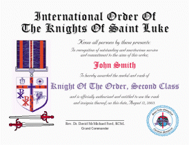 this rank and the seal of Shield Of Faith Chrisitan Ministries. In addition to the full-sized certificate, the Knight